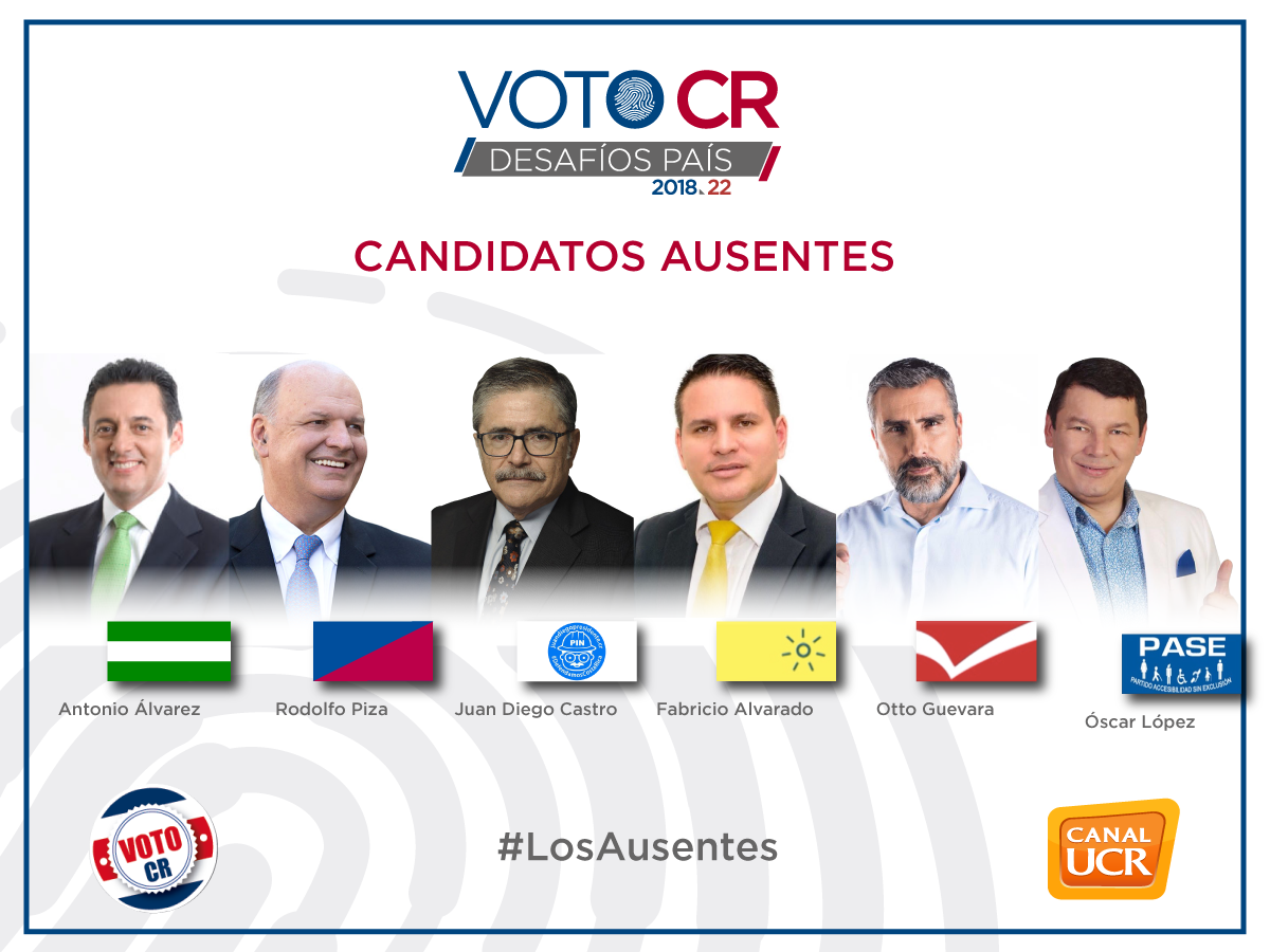 — El viernes pasado participé de un extraño debate con 7 de los 13 candidatos a la Presidencia en Canal 15. Aunque todos fueron invitados con tres meses de anticipación... 6 no llegaron. Así las cosas la ausencia de Piza, Desanti, Castro, Guevara, Fabricio Alvarado y Óscar López no es otra cosa que a) una burla o b) un acto de cobardía. Como sea, es evidente que no les pareció lo suficientemente importante el canal de la UCR ni su audiencia. Lamentable...