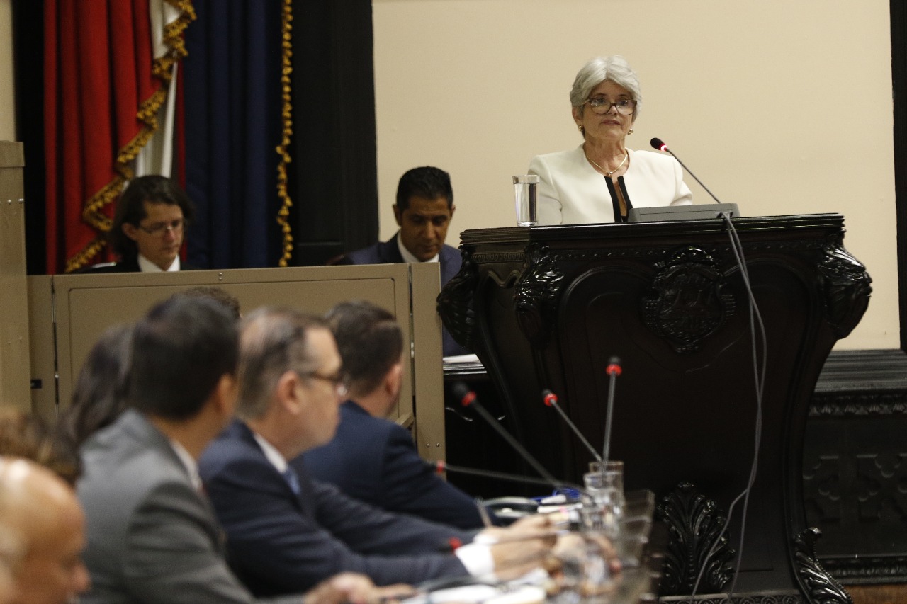 — La ministra de Hacienda Rocío Aguilar Montoya presentó ante el Plenario las propuestas de recortes que pondrá en marcha el Poder Ejecutivo para contener el gasto público.