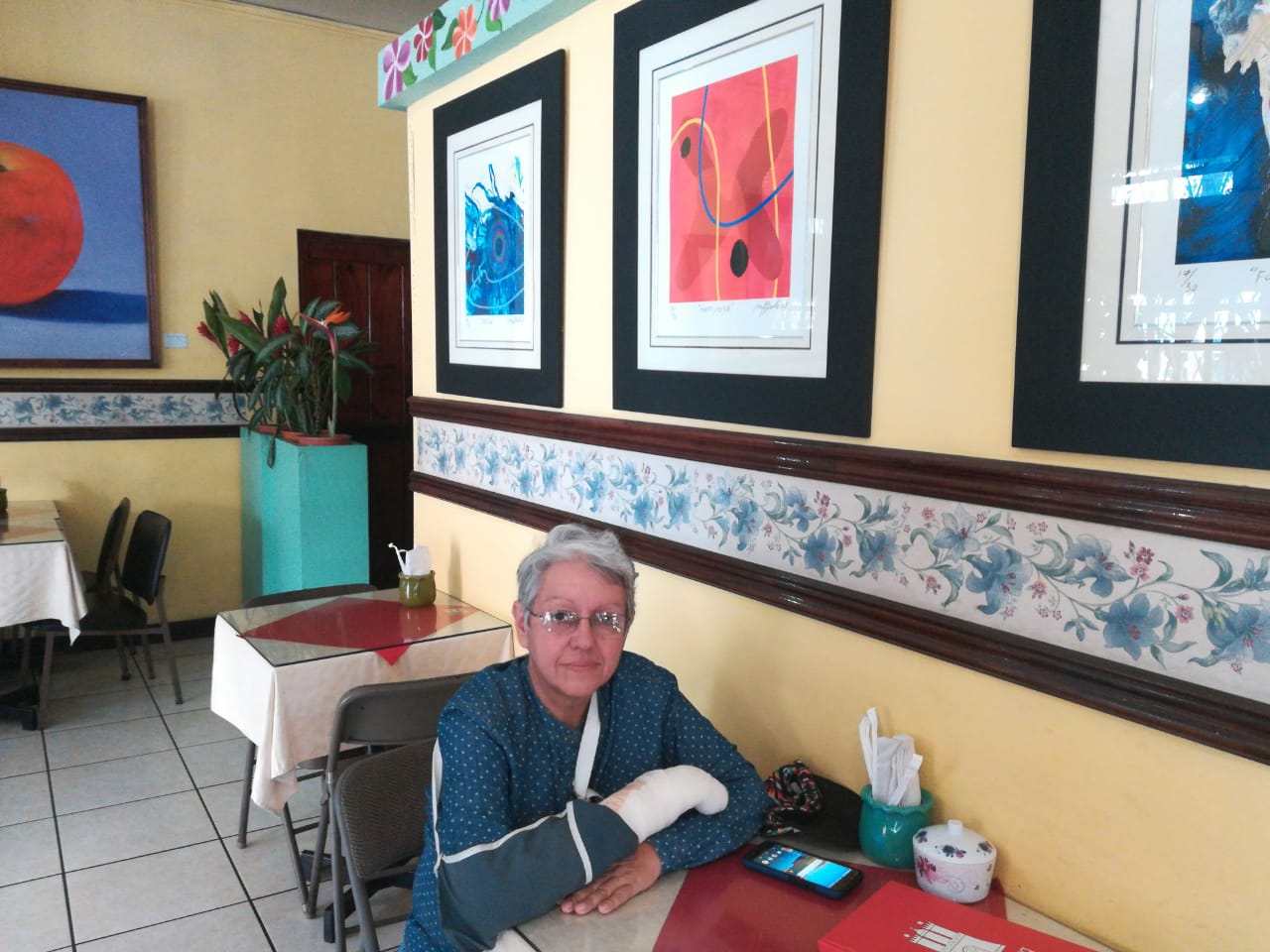Al verla, lo primero que noto es que su brazo se encuentra vendado, resultado de las agresiones que ella, como muchos otros manifestantes han vivido en estas semanas. En su caso particular quedó con dos dedos de la mano derecha fracturados. Esta agresión la vivió justamente ese 18 de abril, día en que comenzaron las protestas en Nicaragua.