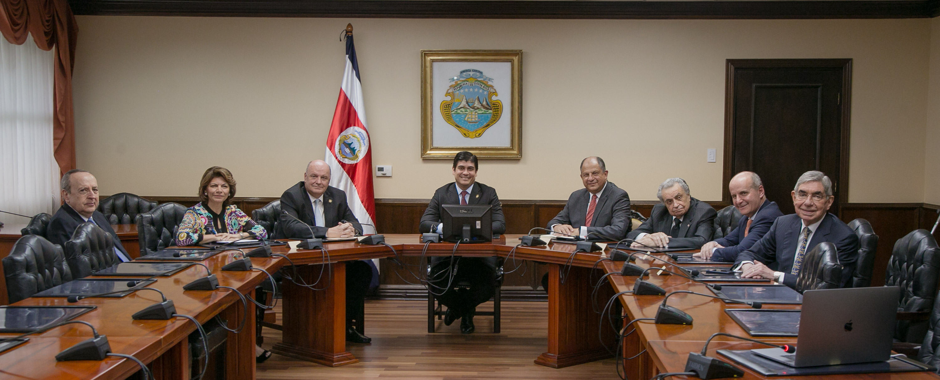 Los antiguos jefes y jefa de Estado y de Gobierno acudieron a un encuentro en la Casa Presidencial a solicitud del Presidente Carlos Alvarado Quesada, quien los recibió junto al ministro de la Presidencia, Rodolfo Piza, para "examinar los principales desafíos del país y los aportes que todos debemos hacer para contribuir al bienestar presente y futuro de los costarricenses".