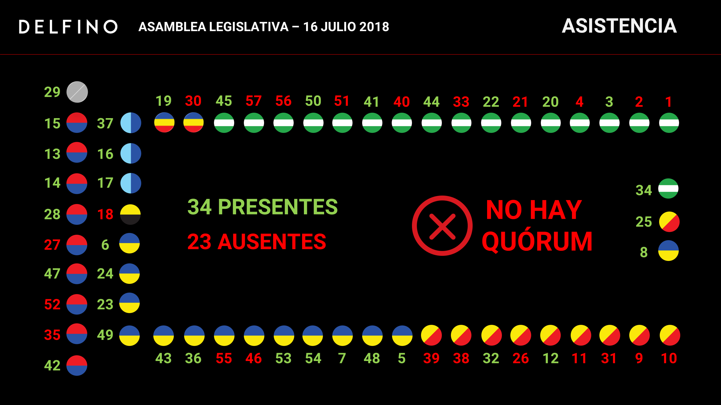 Del documento oficial que da cuenta de la asistencia, se confirmó que 9 diputados del PLN, 7 del PAC, 3 del PUSC, 2 del PREN, 1 del PRSC y 1 del F...