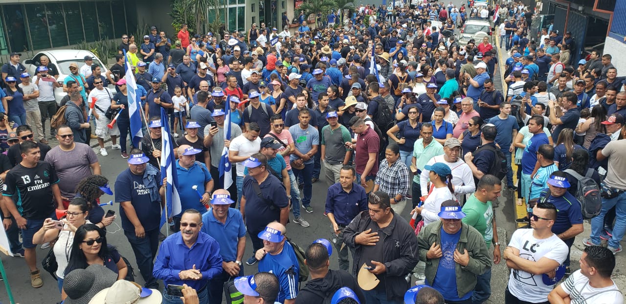 El movimiento arrancó en horas de la mañana con una concentración frente a la Asociación Nacional de Empleados Públicos y Privados (ANEP) bajo el nombre "Marcha por la dignificación laboral de los cuerpos policiales".