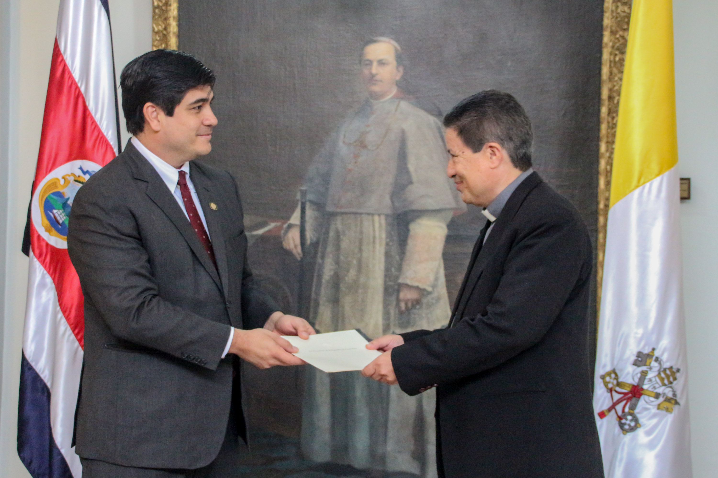 De acuerdo con Casa Presidencial, el encuentro se prolongó por más de dos horas y participaron monseñor José Rafael Quirós; Monseñor Daniel Blanco, Obispo Auxiliar de San José, y los padres Edwin Aguiluz y Luis Alejandro Rojas. Del Gobierno asistió, además del presidente, el ministro Rodolfo Piza, la ministra de Comunicación, Nancy Marín, y el viceministro de la Presidencia, Juan Alfaro.