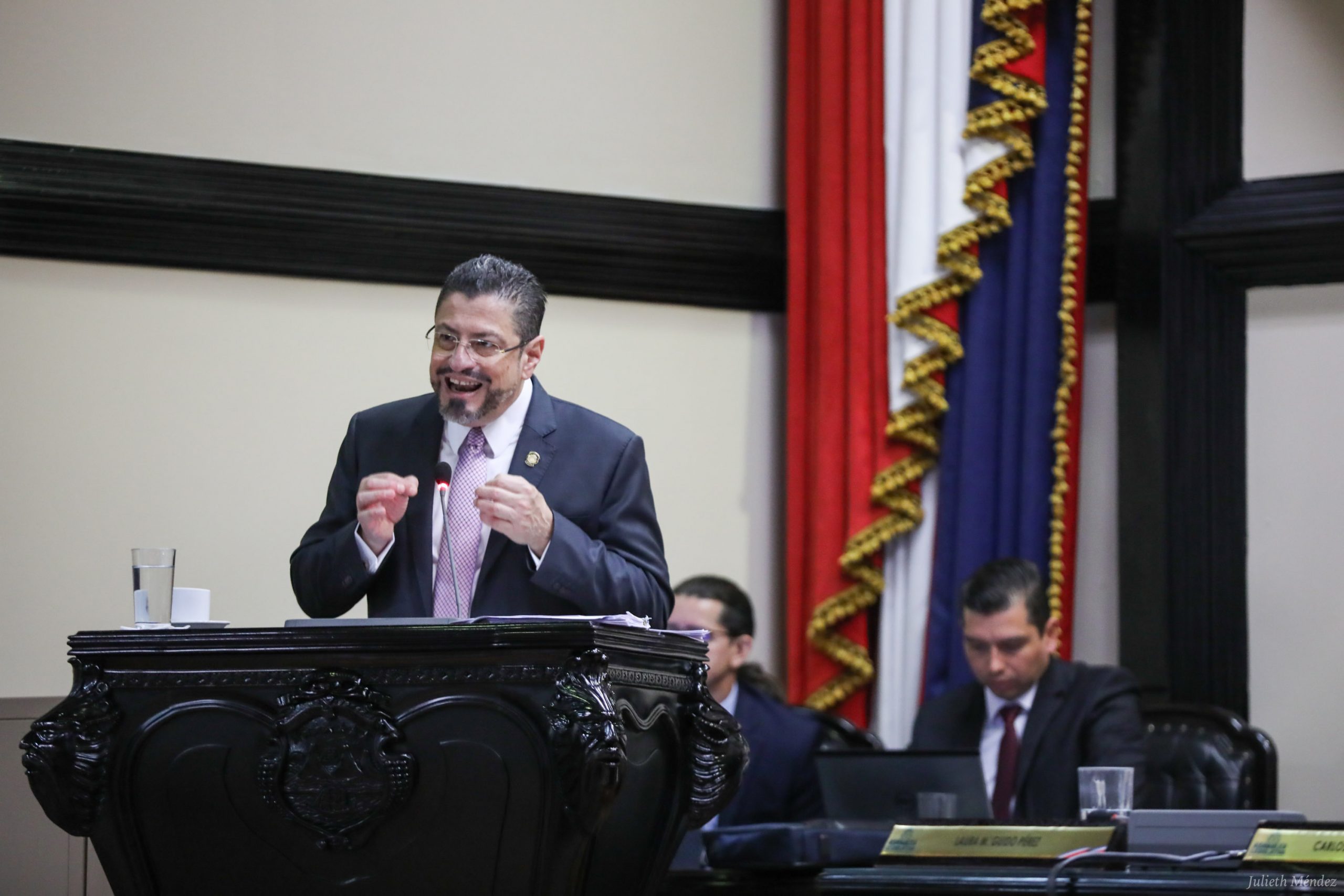 Al iniciar la comparecencia, el ministro agradeció a la Asamblea Legislativa por haber aprobado la Ley de Fortalecimiento de las Finanzas Públicas, ya que esta ley permitió evitar una crisis económica en el país, y según expuso, el déficit fiscal hubiera llegado a 8,44% del PIB (₡ 3 billones) de no haberse aprobado la ley.