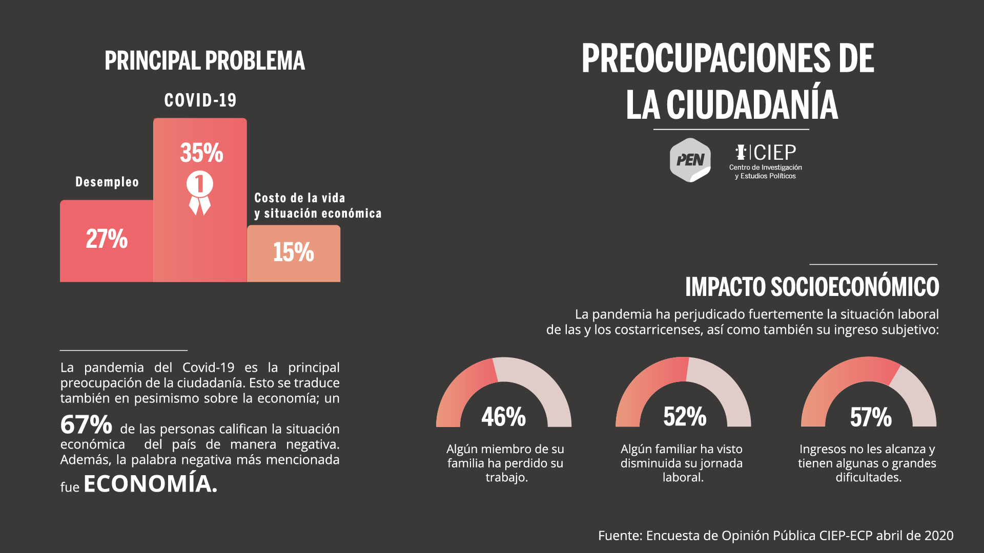 El Centro de Investigación y Estudios Políticos de la UCR (CIEP) presentó el día de hoy los resultados de su más reciente estudio de opinión sociopolítica, en el que destaca la preocupación de la ciudadanía ante la crisis por la pandemia de COVID-19, el repunte en la imagen de todas las instituciones ante el manejo que le han dado a la crisis y que más de la mitad de las personas reportaron dificultades para vivir con sus ingresos actuales.