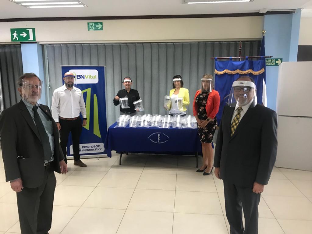 La operadora de pensiones del Banco Nacional, BN Vital, realizó esta semana la entrega de 2.000 caretas de protección facial al Colegio de Médicos y Cirujanos de Costa Rica, para apoyar al personal de salud que trabaja en atención a la emergencia de la pandemia por COVID-19.