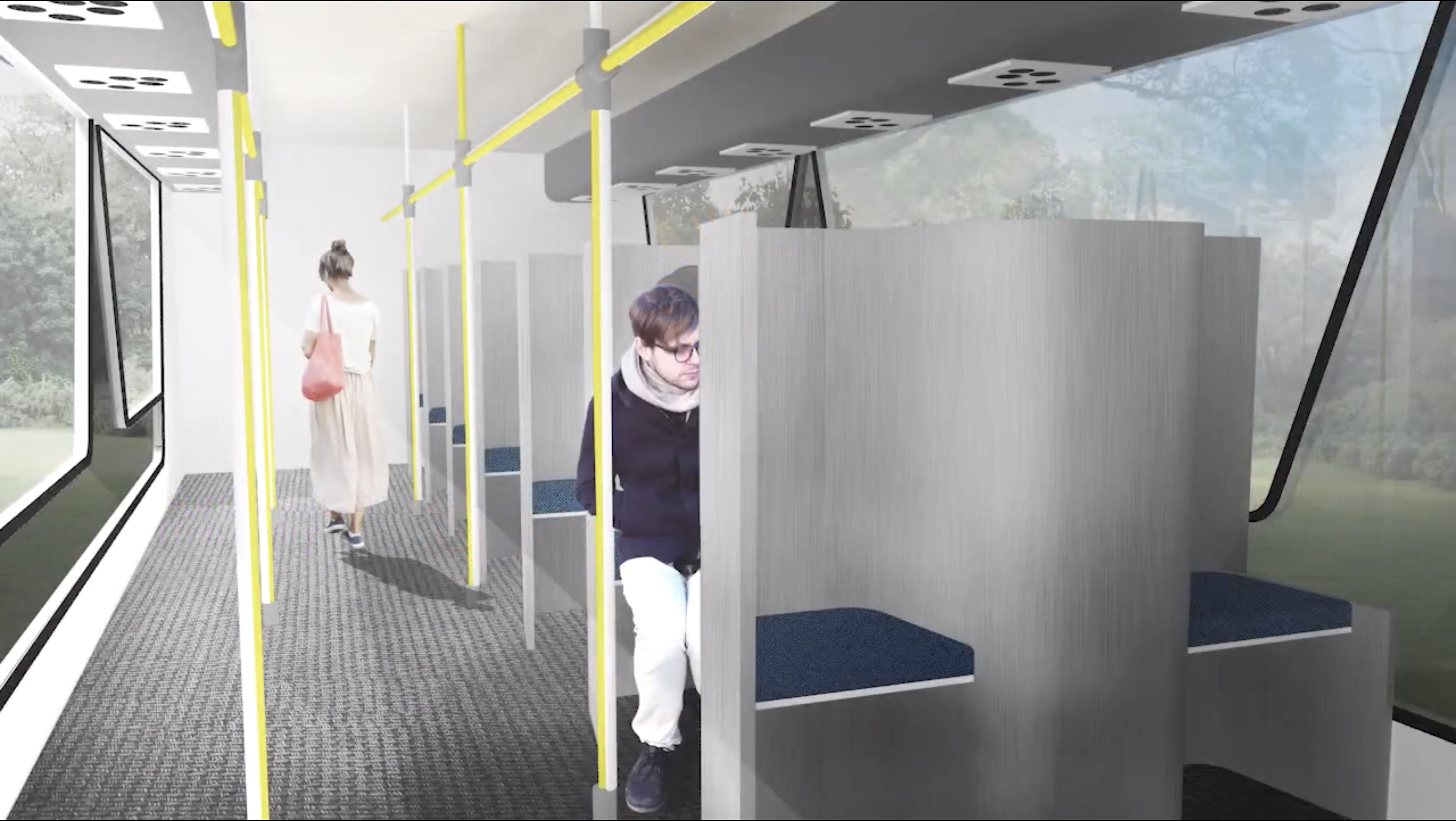 El nuevo concepto de transporte público tiene como objetivo brindar a los pasajeros la confianza para tomar un viaje en autobús minimizando el contacto, utilizando tela antimicrobiana e instalando manijas autolimpiables.