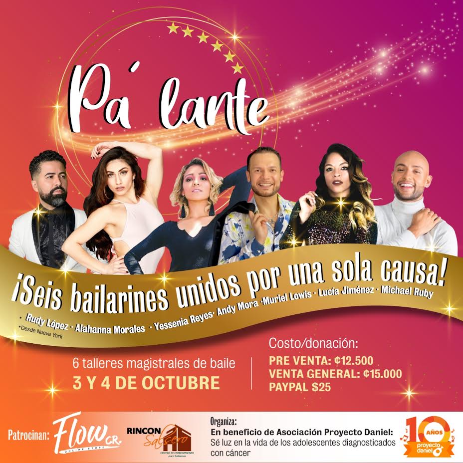 Cuando en Flow CR conocimos sobre Proyecto Daniel y su labor, sentimos que podíamos generar una iniciativa conjunta que se transformara en ayuda para la población que atiende esta organización. Es por eso que trabajamos de lleno en Pa´lante, agrupando a bailarines de una gran trayectoria internacional para que hacer de este evento, toda una experiencia recreativa, pero ante todo solidaria para las personas que nos acompañarán”.