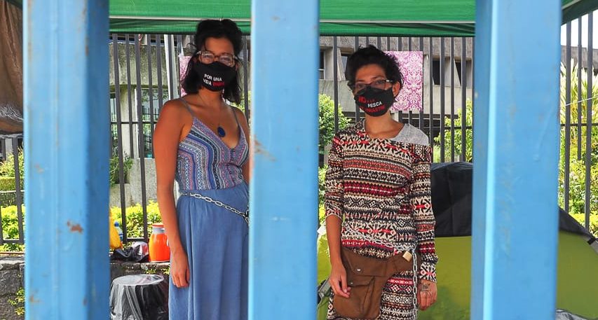 La activistas Ana María y Melissa contabilizan 120 horas en huelga de hambre frente a Casa Presidencial. Ambas mujeres piden al presidente de la República, Carlos Alvarado Quesada, vetar la ley que abre el portillo a la reactivación de la pesca de arrastre en Costa Rica, aprobado en segundo debate la semana pasada.