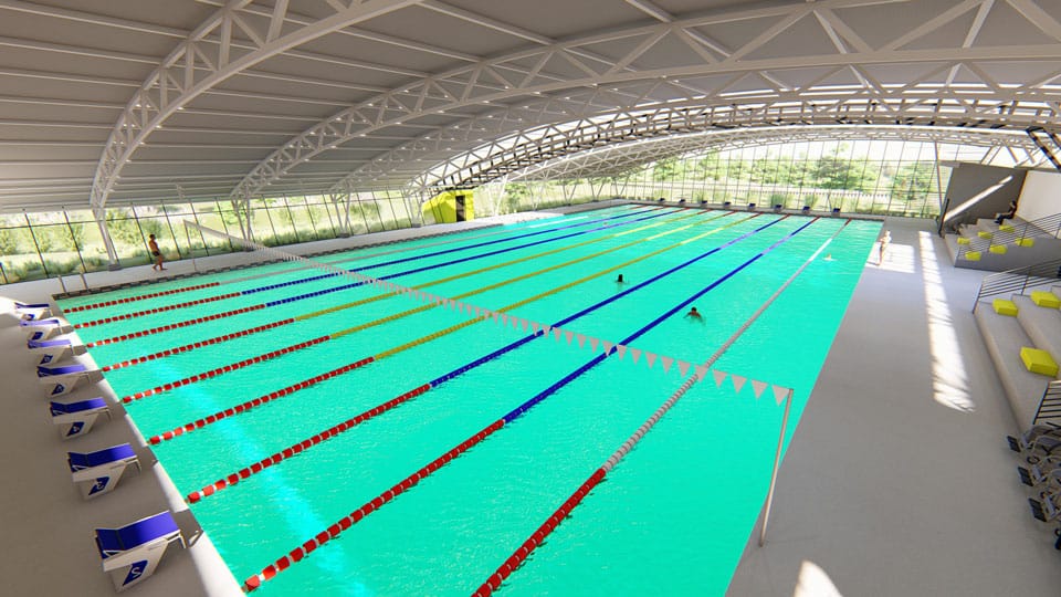 Aunado a la piscina olímpica (extensión de 25 por 50 metros), se construirán áreas de vestidores, graderías norte y sur, oficinas administrativas, enfermería, recepción y sala de reuniones.