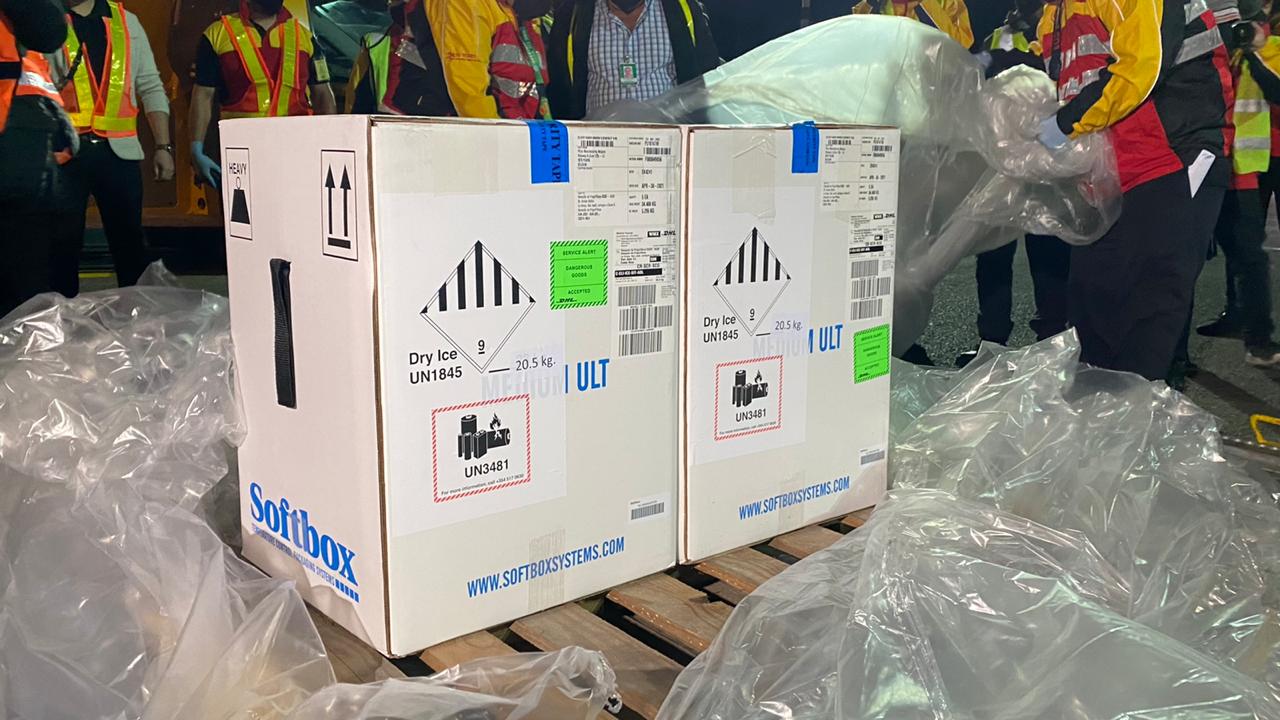 El primer lote de vacunas contra la COVID-19 creadas por el dúo Pfizer-BioNTech aterrizó este miércoles por la noche en el Aeropuerto Internacional Juan Santamaría.