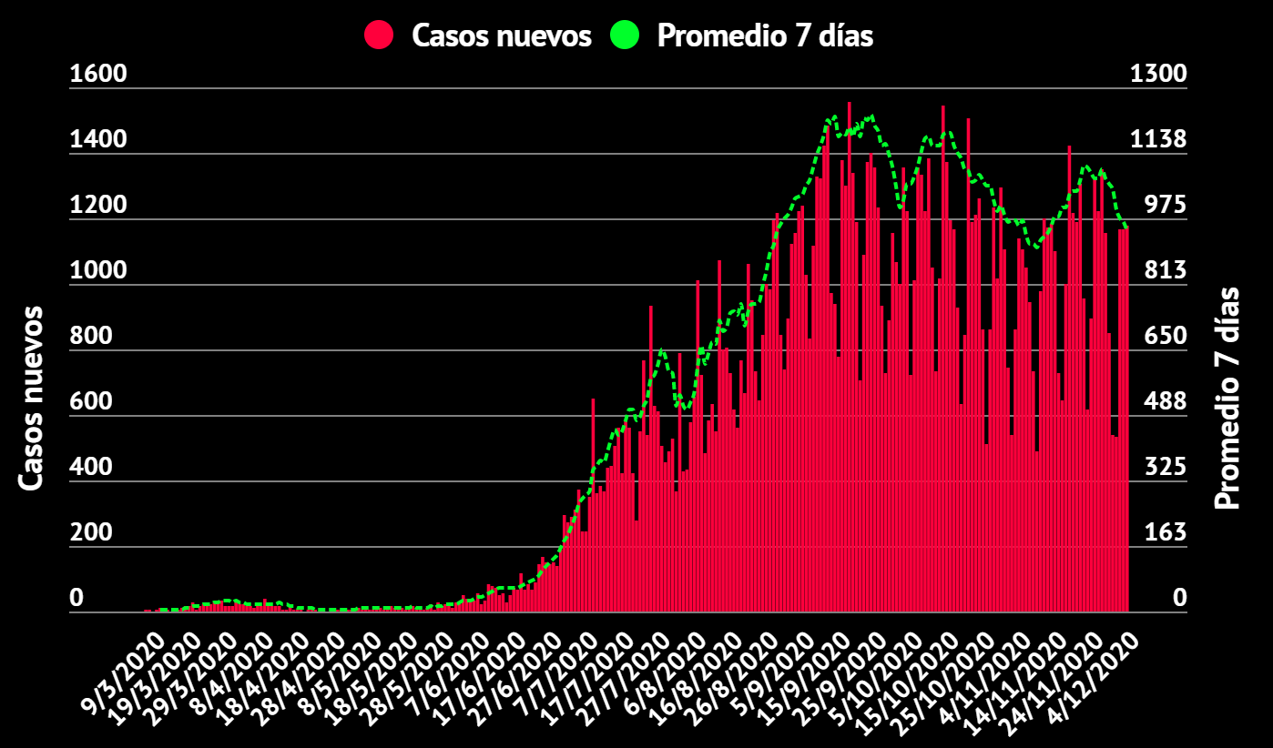 El Ministerio de Salud de Costa Rica confirmó este 4 de diciembre 1180 nuevos casos de COVID-19 en el país, con lo cual la cifra total de casos se eleva a 143.685. Respecto al día de ayer, la variación de los casos confirmados fue del 0.82%.