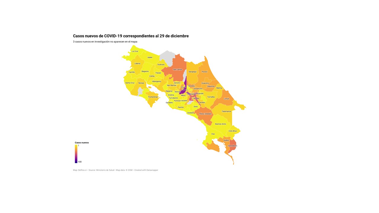 Otros 3 casos nuevos no fueron ubicados en ningún cantón pues siguen bajo investigación. El número de casos pendientes de domicilio cantonal asciende ya a 605, de los cuales 99 casos están activos.