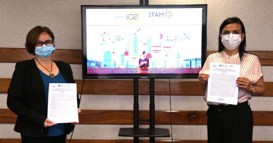 La firma se dio la mañana de este viernes en las instalaciones del IFAM, ubicadas en Moravia. El evento contó con la presencia de Marcela Guerrero, presidenta ejecutiva del IFAM, e Irene Cañas, presidenta ejecutiva del ICE.