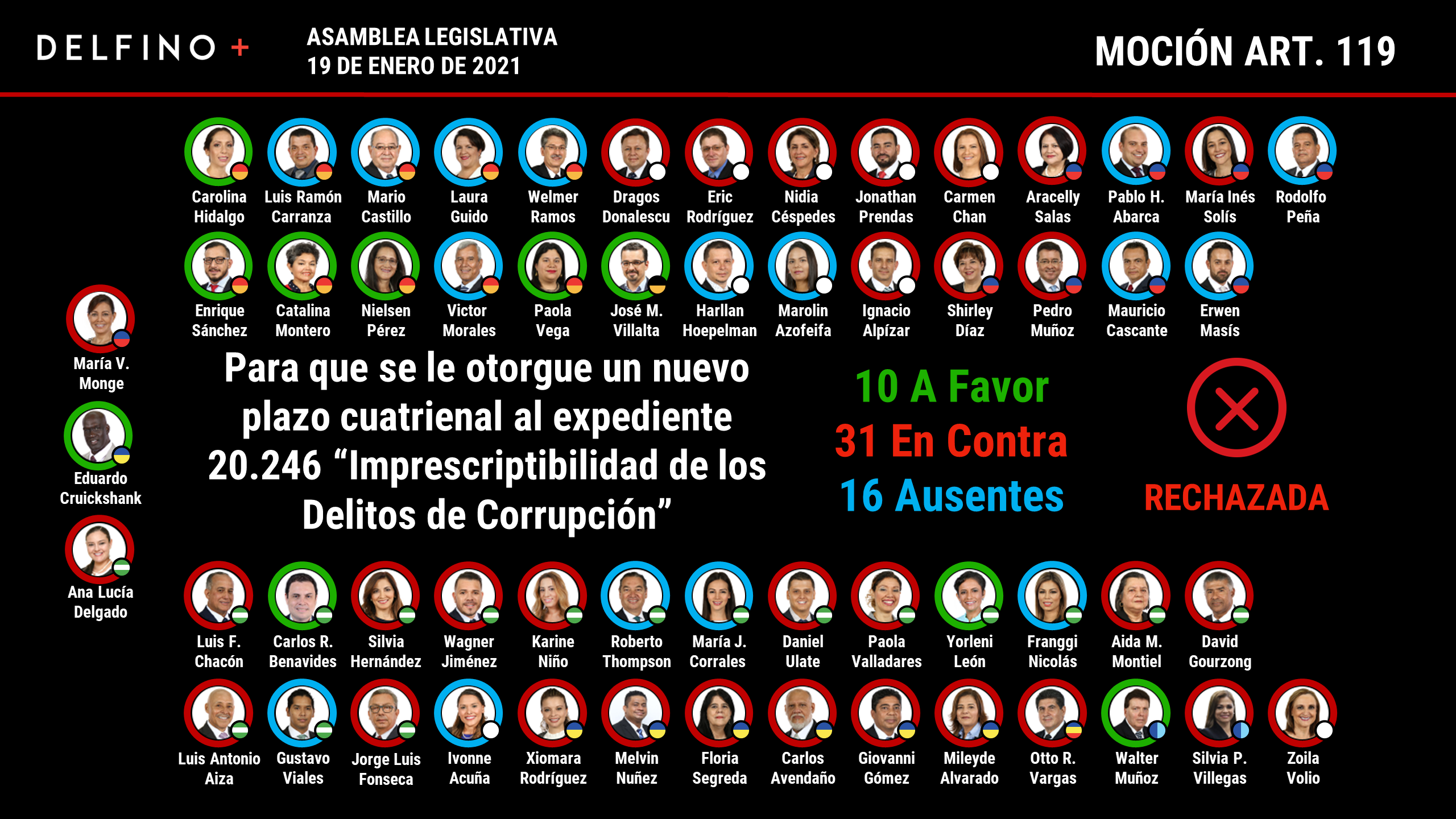 Una mayoría de diputados de la Asamblea Legislativa rechazó, este martes, prorrogar el plazo cuatrienal del proyecto tramitado bajo el expediente 20.246, que habría vuelto imprescriptibles los delitos de corrupción.