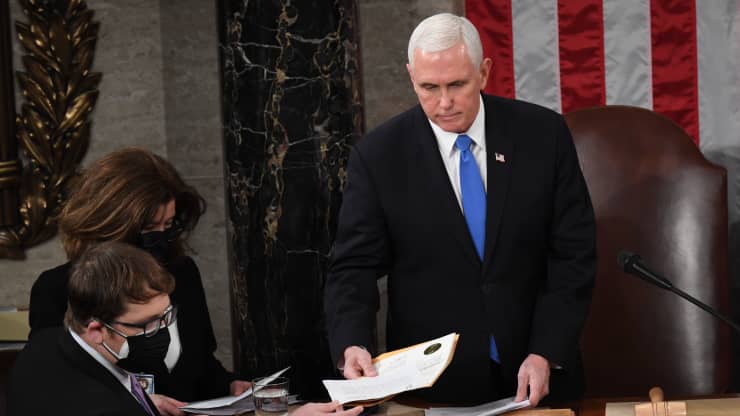 En una carta de tres páginas dirigida al Congreso, Pence afirmó que tras leer detenidamente la Constitución, no tenía, contrario a lo afirmado por Trump, la autoridad legal para rechazar por su propia cuenta los votos del Colegio Electoral para un determinado candidato, recordando que el papel del vicepresidente en este ritual es meramente ceremonial.