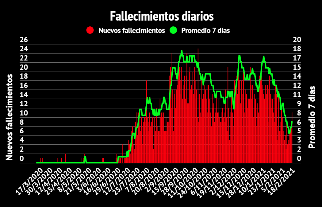 Dato D+: El promedio de casos nuevos de los últimos siete días es de 355, el más bajo desde el 9 de julio de 2020 cuando fue de 352.