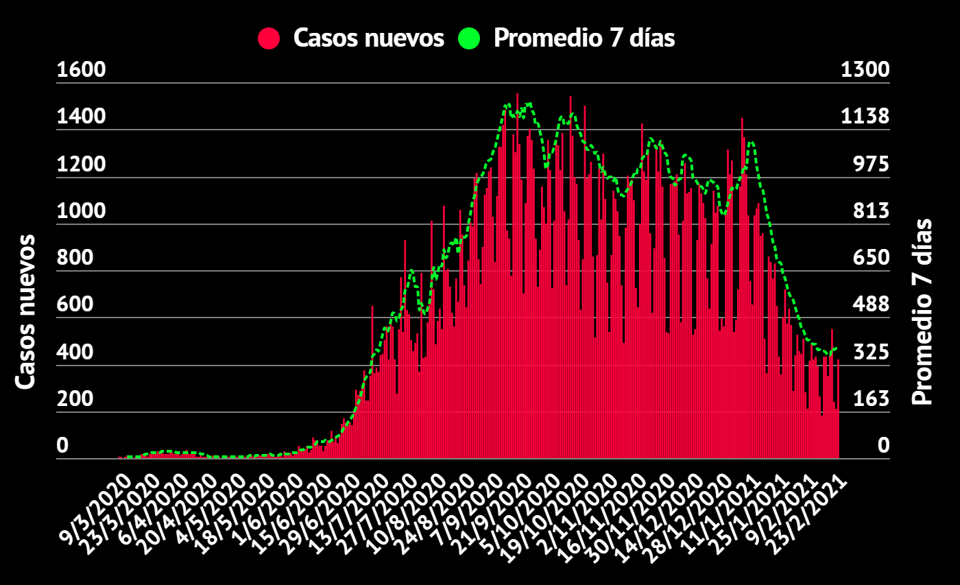 El Ministerio de Salud de Costa Rica confirmó este 23 de febrero 423 nuevos casos de COVID-19 en el país, con lo cual la cifra total de casos se eleva a 203.097. Respecto al día de ayer, la variación de los casos confirmados fue del 0.20%.