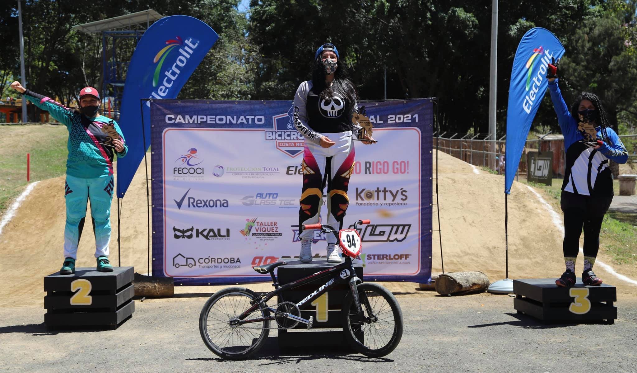 Johanna Solano Vílchez y Maikol Cordero Sánchez se proclamaron campeones de la categoría élite este domingo en el Campeonato Nacional del BMX Bicicross 2021, realizado en la pista del Parque de la Paz en San José.