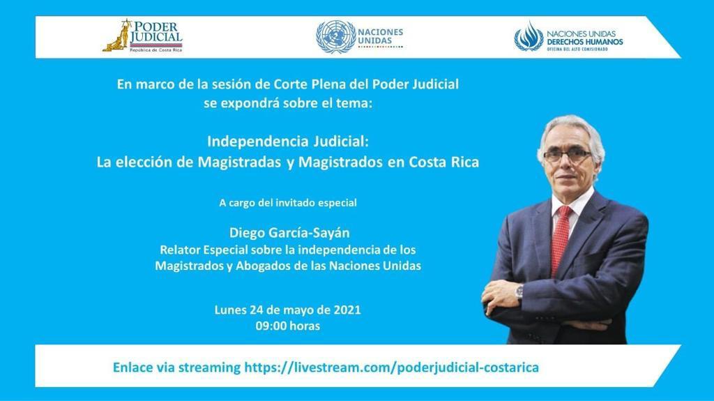 Para este lunes 24 de mayo de 2021 tenía una cita con Corte Plena, por gentil invitación que le hizo su presidente D. Fernando Cruz Castro, el ex-presidente de la Corte Interamericana de Derechos Humanos y hoy relator especial de la Organización de las Naciones Unidas sobre Independencia de Magistrados y Abogados, D. Diego García-Sayán.
