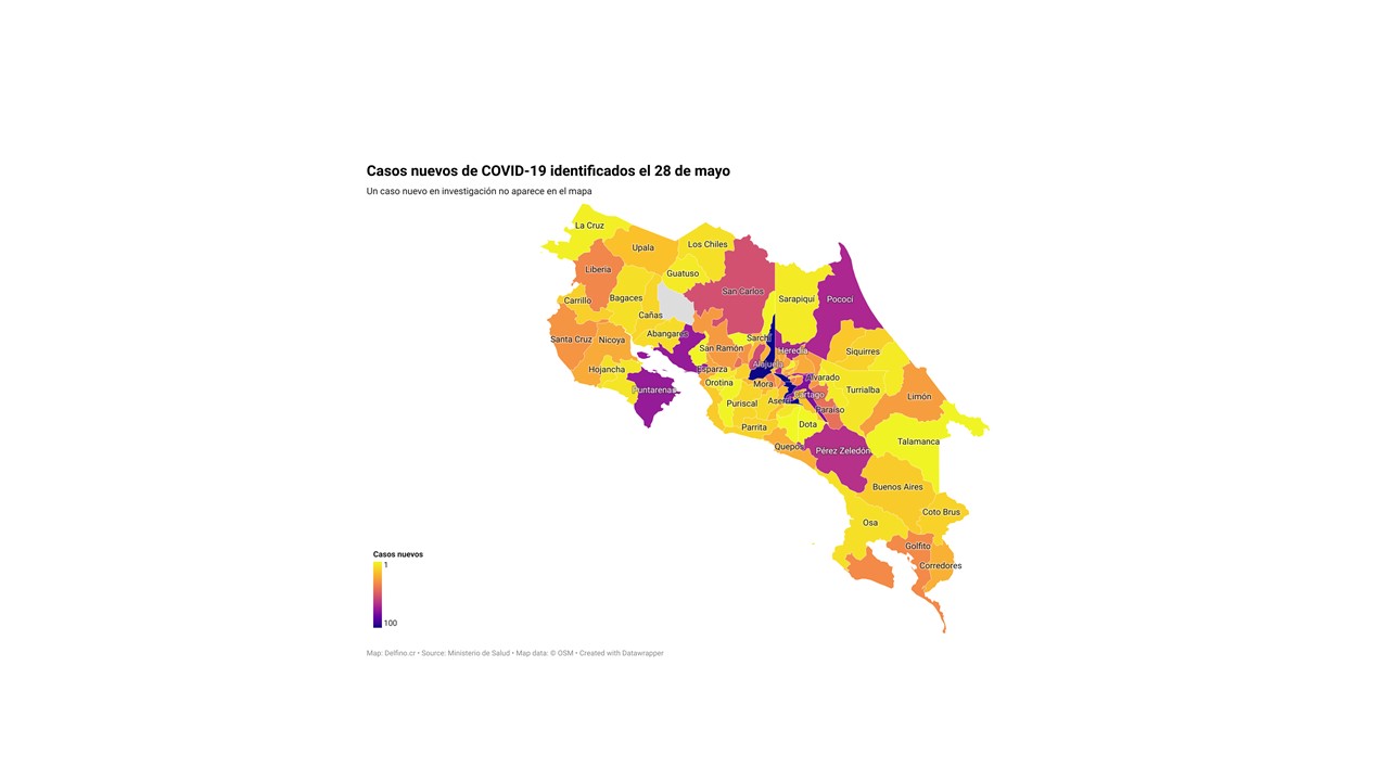 Un caso nuevo no fue ubicado en ningún cantón pues siguen bajo investigación. El número de casos pendientes de domicilio cantonal asciende ya a 616, de los cuales 99 casos están activos.