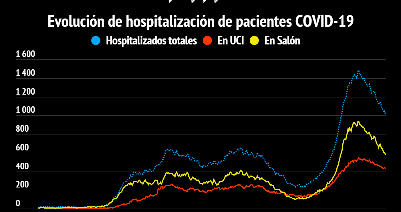Hay 1001 personas hospitalizadas (-41) de las cuales 425 están internadas en Unidades de Cuidados Intensivos (-17) con edades de entre 0 a 93 años.