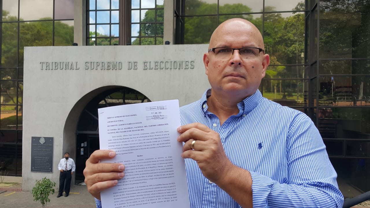 Esta tarde el ingeniero Alberto París Lucovich interpuso un recurso de amparo electoral en contra del acuerdo tomado por la Asamblea Nacional del Partido Liberación Nacional, celebrada el 15 de mayo de 2021 y en la que se decidió ratificar la celebración de la convención interna para la elección del candidato a la Presidencia de la República.
