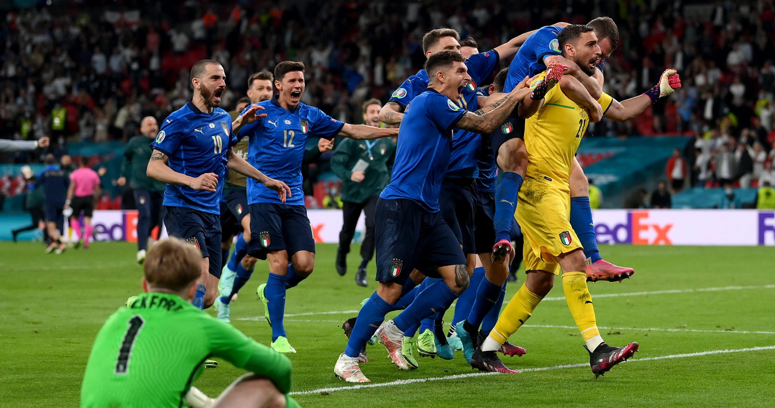 Ahí fue el momento de nuevo de Chiellini, achicando para Italia. Los de Mancini cortaron por lo sano, como Jorginho sobre Grealish, y esta Euro de emociones fuertes se guardó la última para el final. La tanda fue de infarto, con un primer fallo de Belotti. Pickford parecía vestirse de héroe, deteniendo también a Jorginho sin red los suyos, pero fue Donnarumma quien se hizo más grande aún.
