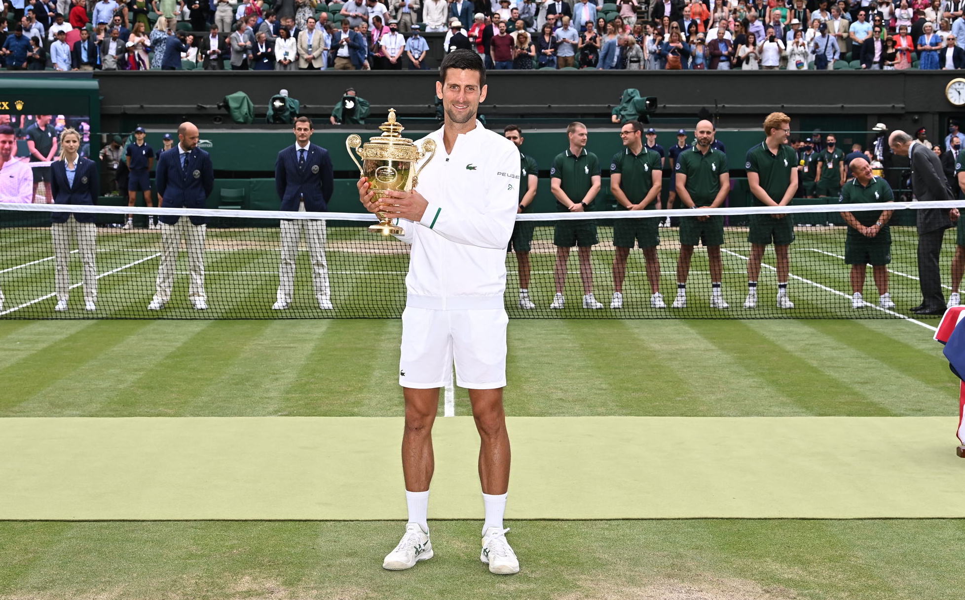 Tras un año sin tenis en el All England Tennis Club por culpa de la pandemia de coronavirus, La Catedral abrió de nuevo bajo el dominio del de Belgrado, tercer título seguido (2011, 2014, 2015, 2018, 2019 y 2021). El número uno del mundo, con un tres de tres en "Grand Slam" en 2021, campeón de Australia, Roland Garros y ahora Wimbledon, mira a los ojos a sus rivales históricos.