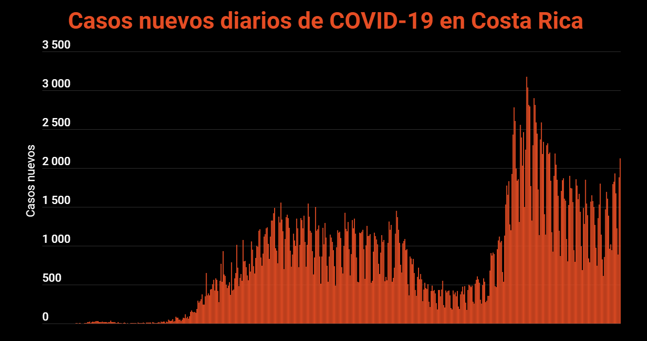 La cifra de casos nuevos de hoy es la más alta desde el 9 de junio y Costa Rica no registraba más de 2000 casos nuevos de COVID-19 desde el 10 de junio.