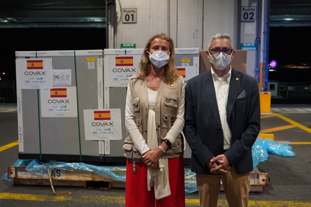 De la cifra entregada, 69.600 dosis corresponden a la donación hecha por el Gobierno de España, y 86.400 dosis son del contrato suscrito entre Costa Rica y COVAX.