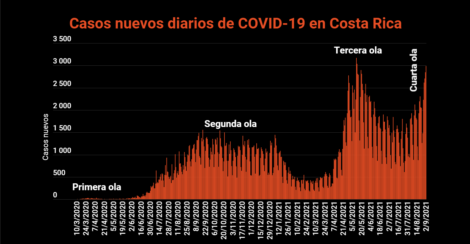 El Ministerio de Salud de Costa Rica confirmó este 2 de septiembre 2991 nuevos casos de COVID-19 en el país, con lo cual la cifra total de casos se eleva a 469.565. Respecto al día de ayer, la variación de los casos confirmados fue del 0.64%.