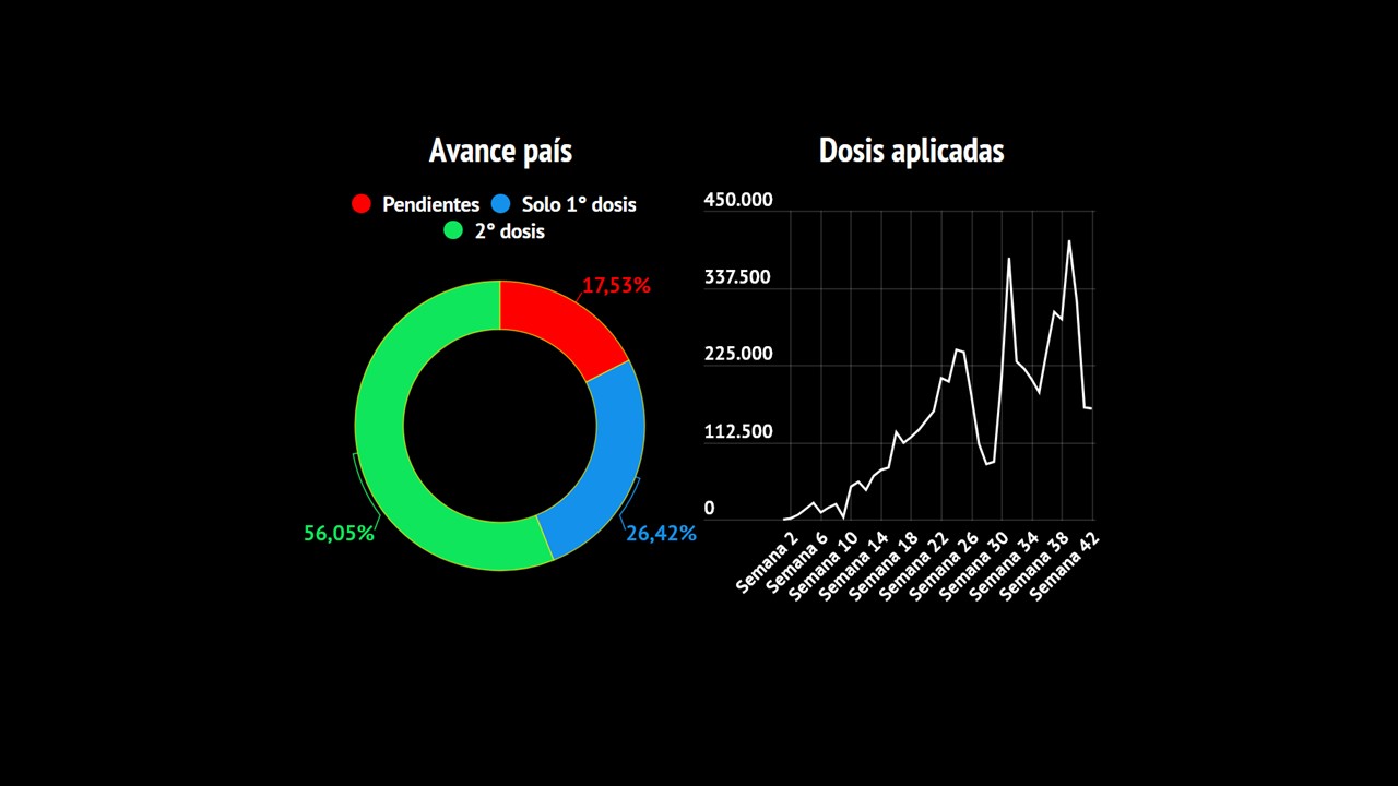 — Empecemos con la actualización semanal de la Caja: se han aplicado 5.921.089 dosis de vacuna de las 6.653.135 que han sido recibidas por el país (88.99%). De las dosis colocadas, 3.525.260 son primeras dosis (59.54%) y 2.395.829 son segundas dosis. Un 82.47% de la población meta (≈4.274.384) ha recibido la vacuna: 56.05% cuenta con el esquema completo de dos dosis.