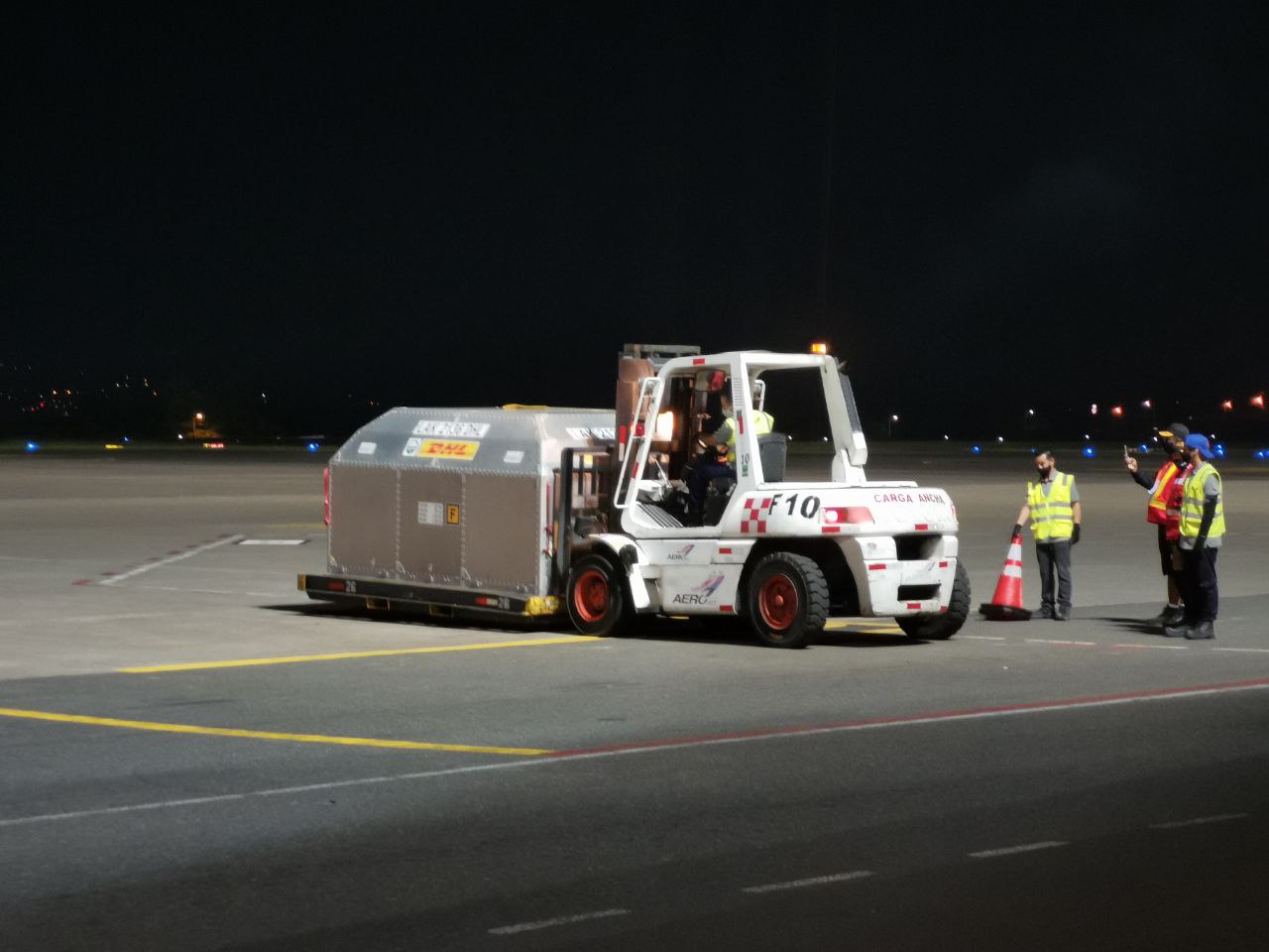 Se trata de 107.640 dosis que arribaron al Aeropuerto Internacional Juan Santamaría a bordo de un vuelo de DHL; y que ahora serán sometidas a la revisión de los reportes de temperatura y aprobación documental por el laboratorio de control de calidad de medicamentos, tras lo cual quedan disponibles para su utilización en la campaña de vacunación.