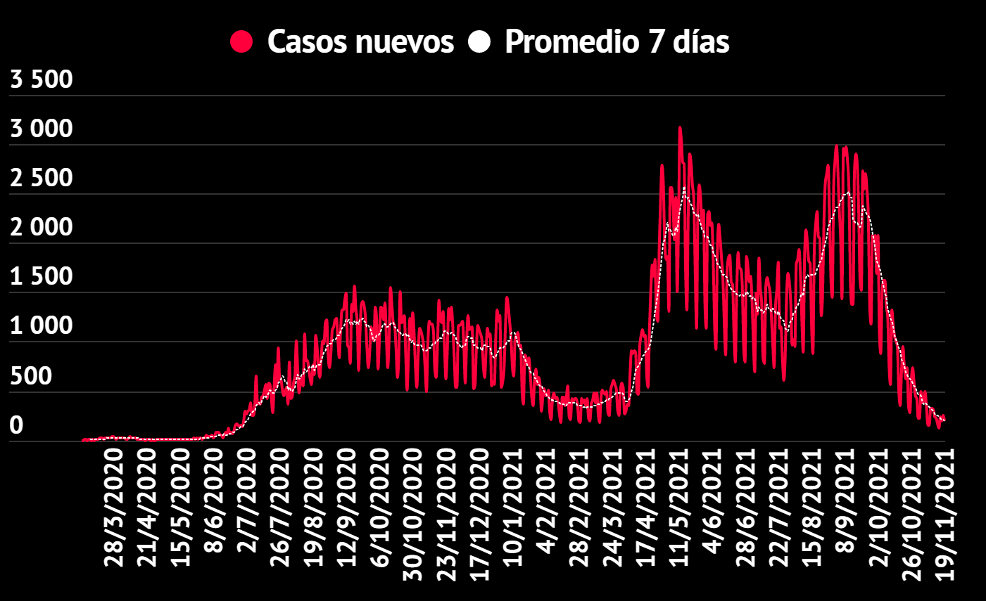 Datos clave del día: La incidencia semanal bajó un punto hasta los 26 casos nuevos por cada 100 mil habitantes y la cifra diaria de casos nuevos promediada a siete días bajó a 198. La cifra de tres nuevos decesos de este viernes es la más baja desde el 4 de abril de 2021, cuando se reportaron dos.