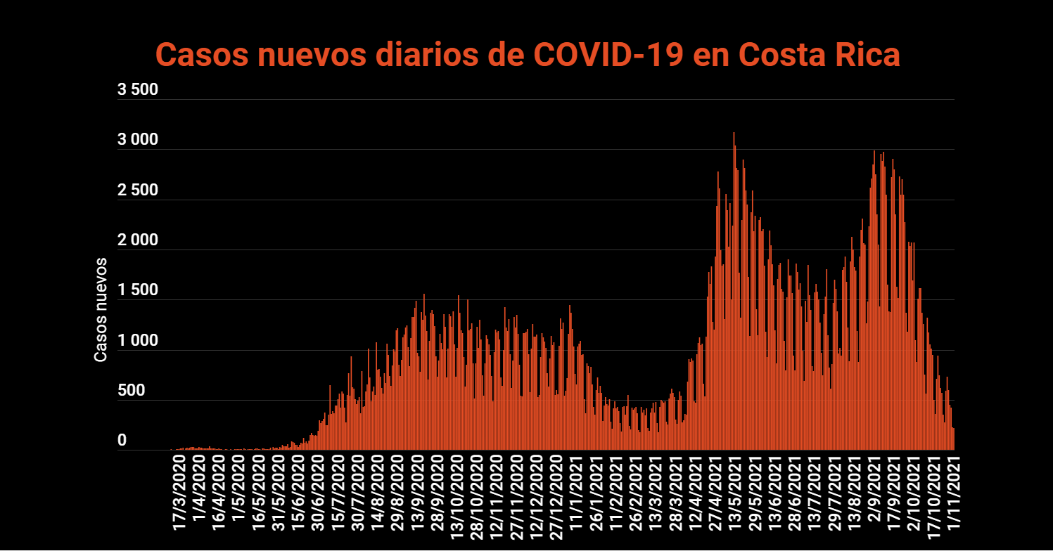El Ministerio de Salud de Costa Rica confirmó este 1 de noviembre 865 nuevos casos de COVID-19 en el país acumulados desde el sábado, con lo cual la cifra total de casos se eleva a 560.563. Respecto al viernes pasado, la variación de los casos confirmados fue del 0.03%.
