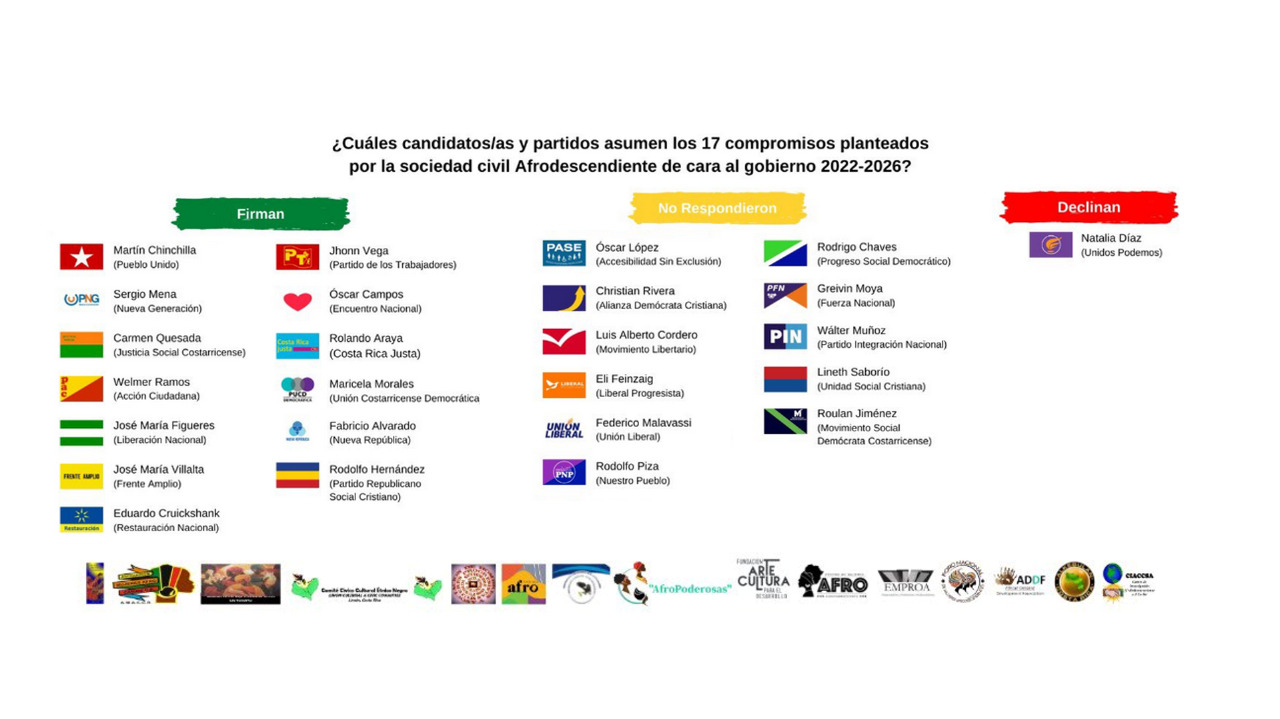 12 candidaturas se abstuvieron de firmar un total de 17 compromisos que buscan garantizar los derechos de los pueblos y las personas afrodescendientes y procurar la disminución de las brechas de desigualdad que les afectan.