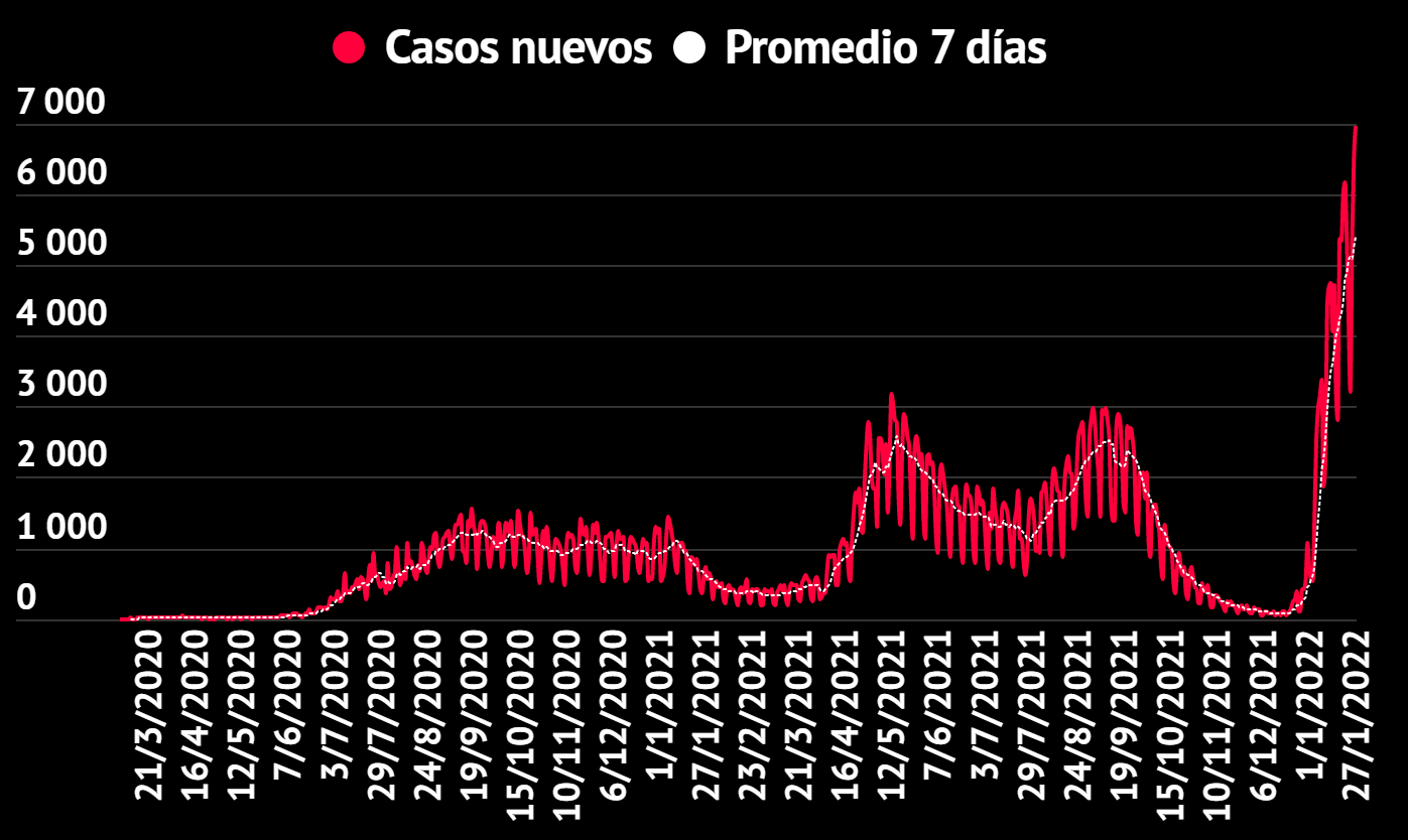 El Ministerio de Salud de Costa Rica confirmó este 27 de enero un nuevo récord de 6969 casos de COVID-19 en el país, con lo cual la cifra total de casos se eleva a 675.178. Respecto al día de ayer, la variación de los casos confirmados fue del 1.04%.