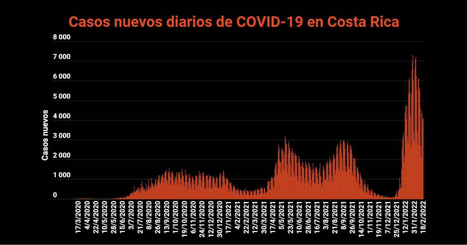 El Ministerio de Salud de Costa Rica confirmó este 18 de febrero 4114 nuevos casos de COVID-19 en el país, con lo cual la cifra total de casos se eleva a 783.437. Respecto al día de ayer, la variación de los casos confirmados fue del 0.52%.