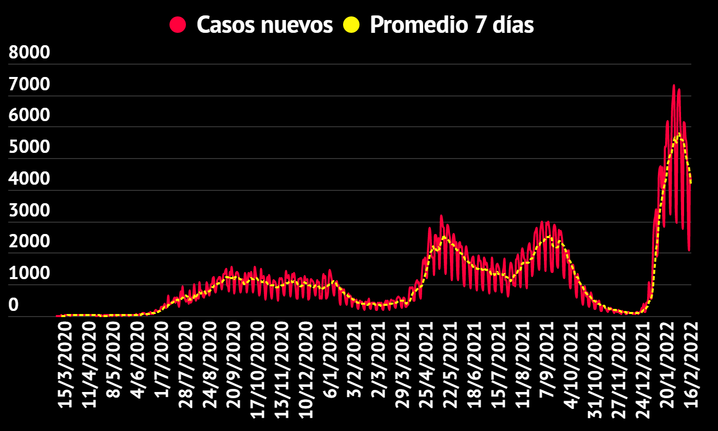 Datos clave del día: La incidencia semanal cayó 35 puntos hasta los 568 casos nuevos por cada 100 mil habitantes, y la cifra diaria de casos nuevos promediada a siete días bajó a 4196. Respecto al miércoles de la semana pasada, los casos nuevos bajaron 29.7%.