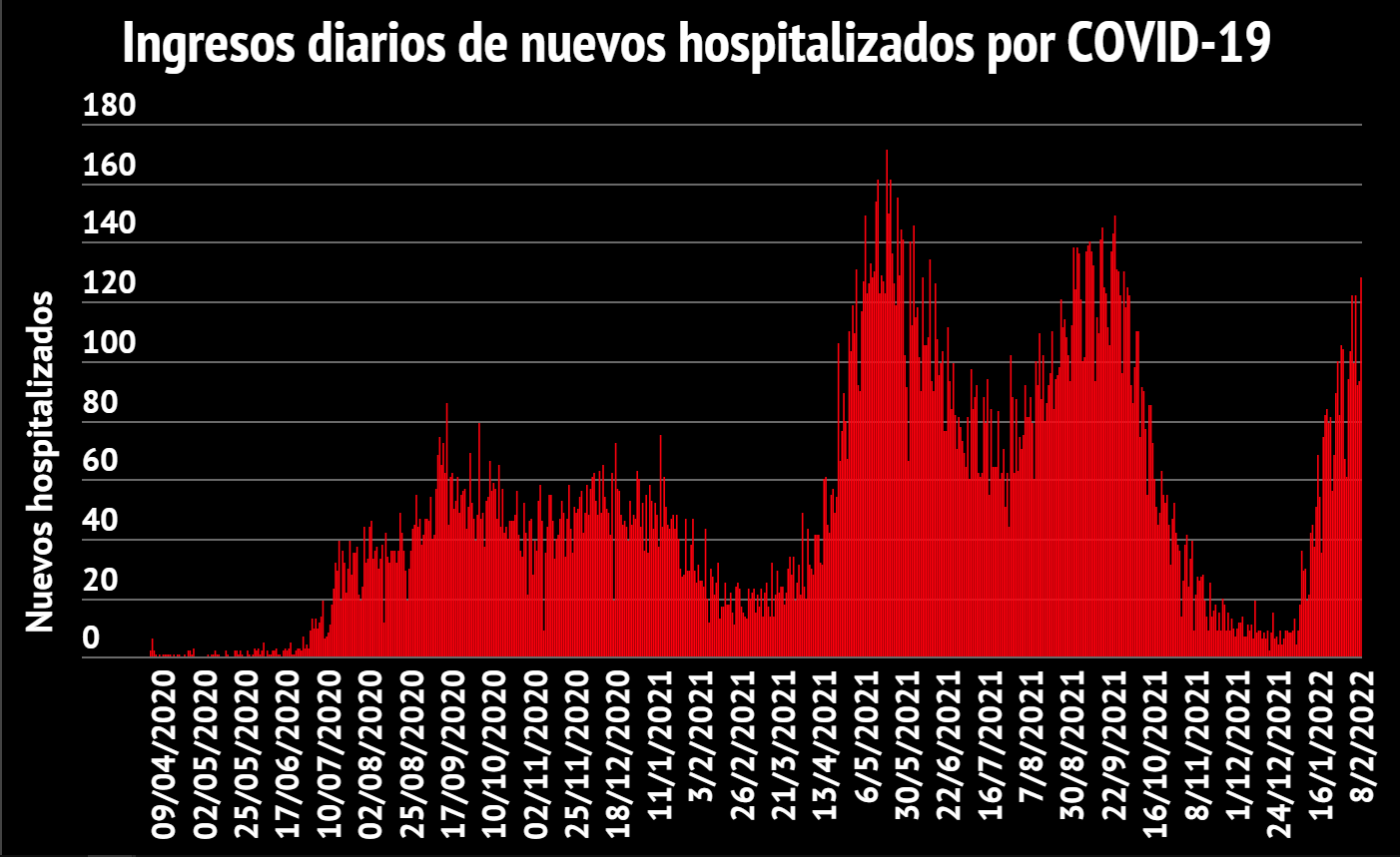 Hay 965 personas hospitalizadas (-6) de las cuales 140 están internadas en Unidades de Cuidados Intensivos (+3) con edades de entre 0 a 98 años.