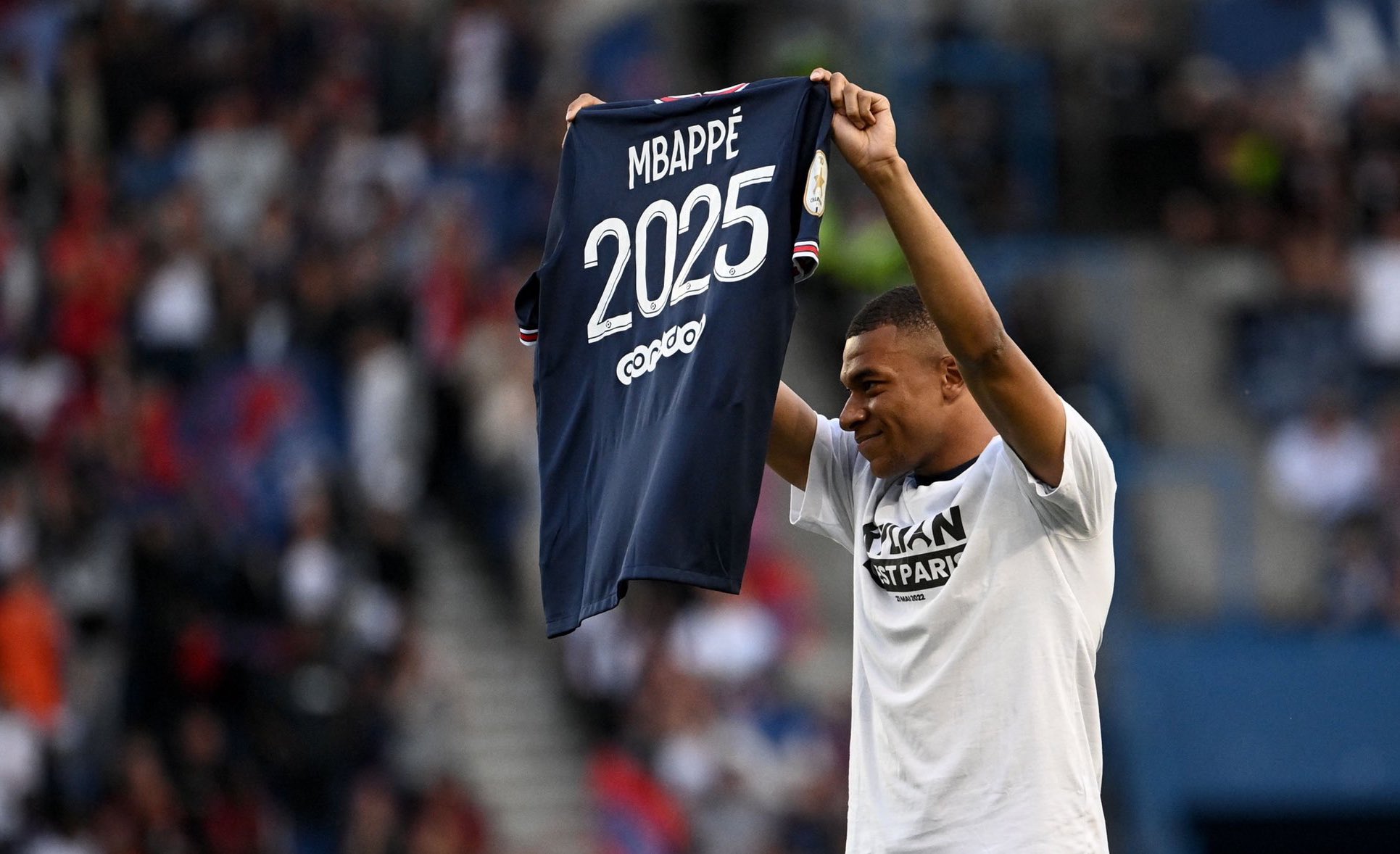 Nuestra historia está escrita aquí, aquí está París", dijo Mbappé, vestido de gala y sobre el estadio Parque de los Príncipes, donde minutos después posó con la camiseta del club inscrita con su nombre y la cifra de 2025, año hasta que seguirá en el PSG.