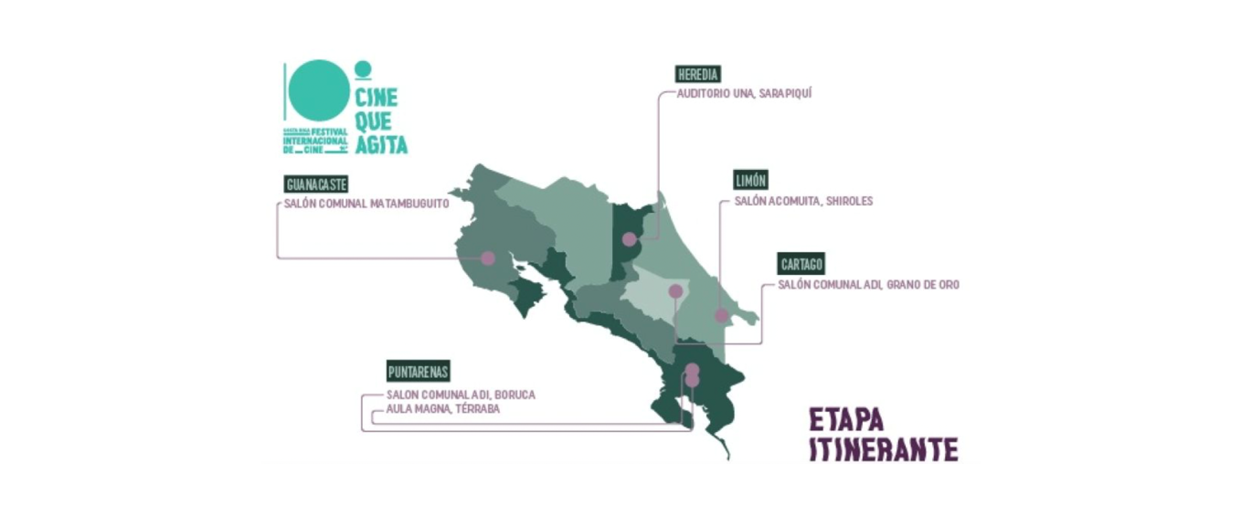 La muestra de cine estará presente a lo largo de dos meses en distintas fechas en las localidades de Matambuguito en Guanacaste, Shiroles en Limón, Boruca y Térraba en Puntarenas, Sarapiquí en Heredia y Grano de Oro en Cartago.