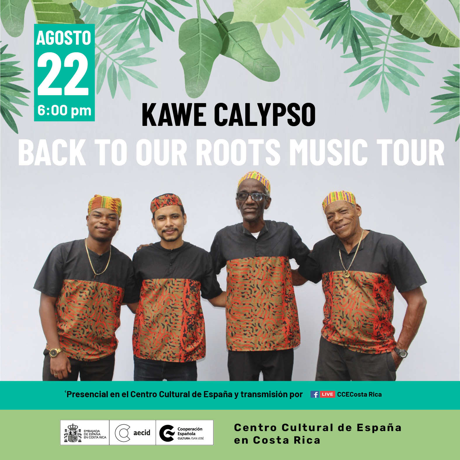 El evento se realizará en alianza y participación del grupo musical Kawe Calypso, de 6 de la tarde a 9 de la noche en la sede del Centro español, en Barrio Escalante.