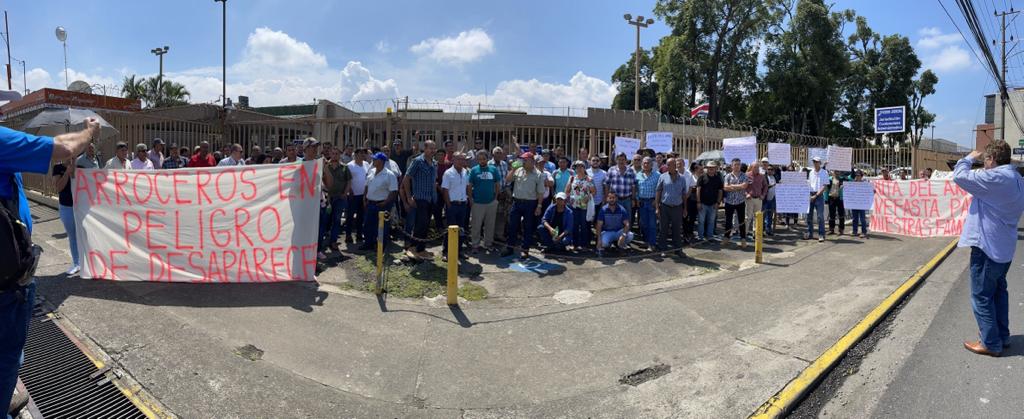 La Corporación Arrocera Nacional convocó a varias decenas de productores de arroz de Guanacaste, Huetar Norte, Pacífico Central y Sur, para manifestarse pacíficamente y presentar una demanda contra el gobierno, ante el Tribunal de Apelaciones de lo Contencioso Administrativo y Civil de Hacienda.
