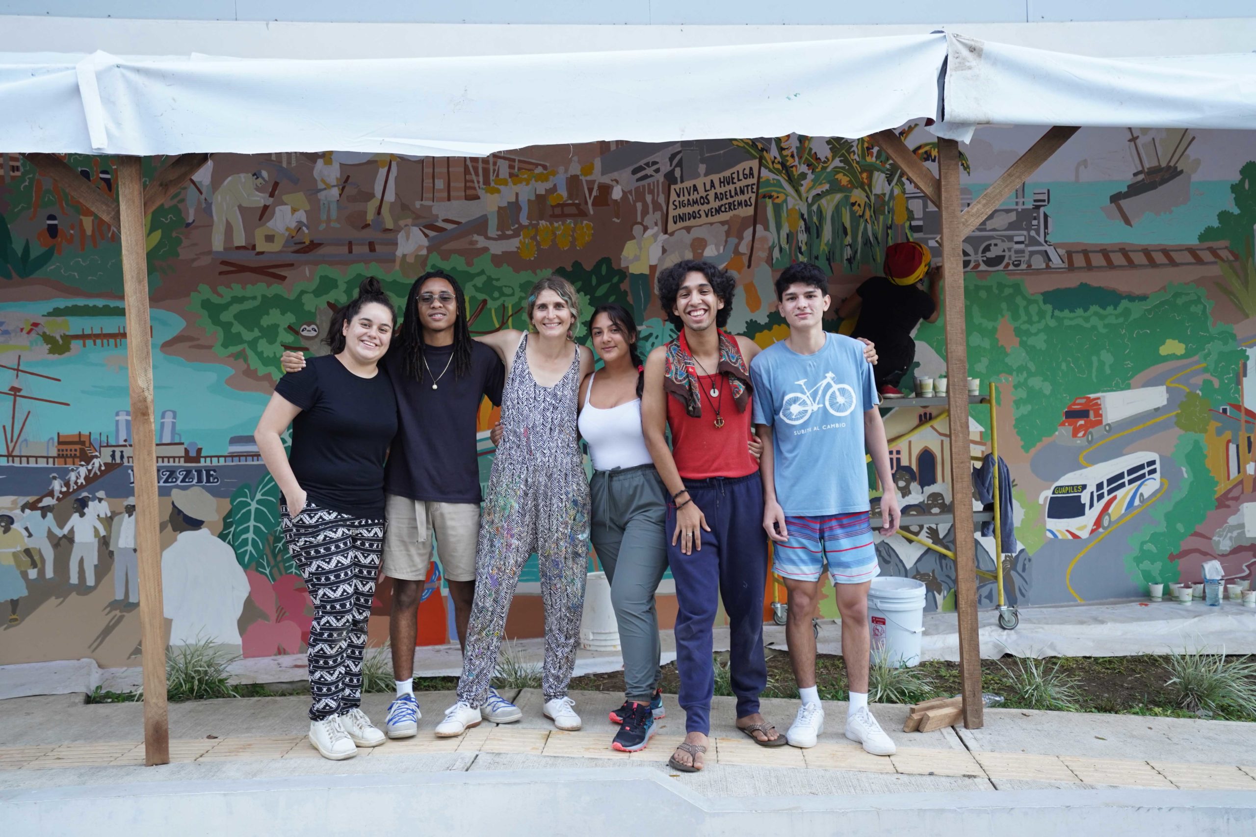 La dirección artística y ejecución de este mural, realizada por Arguello, contó con el apoyo de un grupo de muralistas limonenses, entre ellos Andrés Sevilla, Morelia Abraham, Karla Mena, entre otros.
