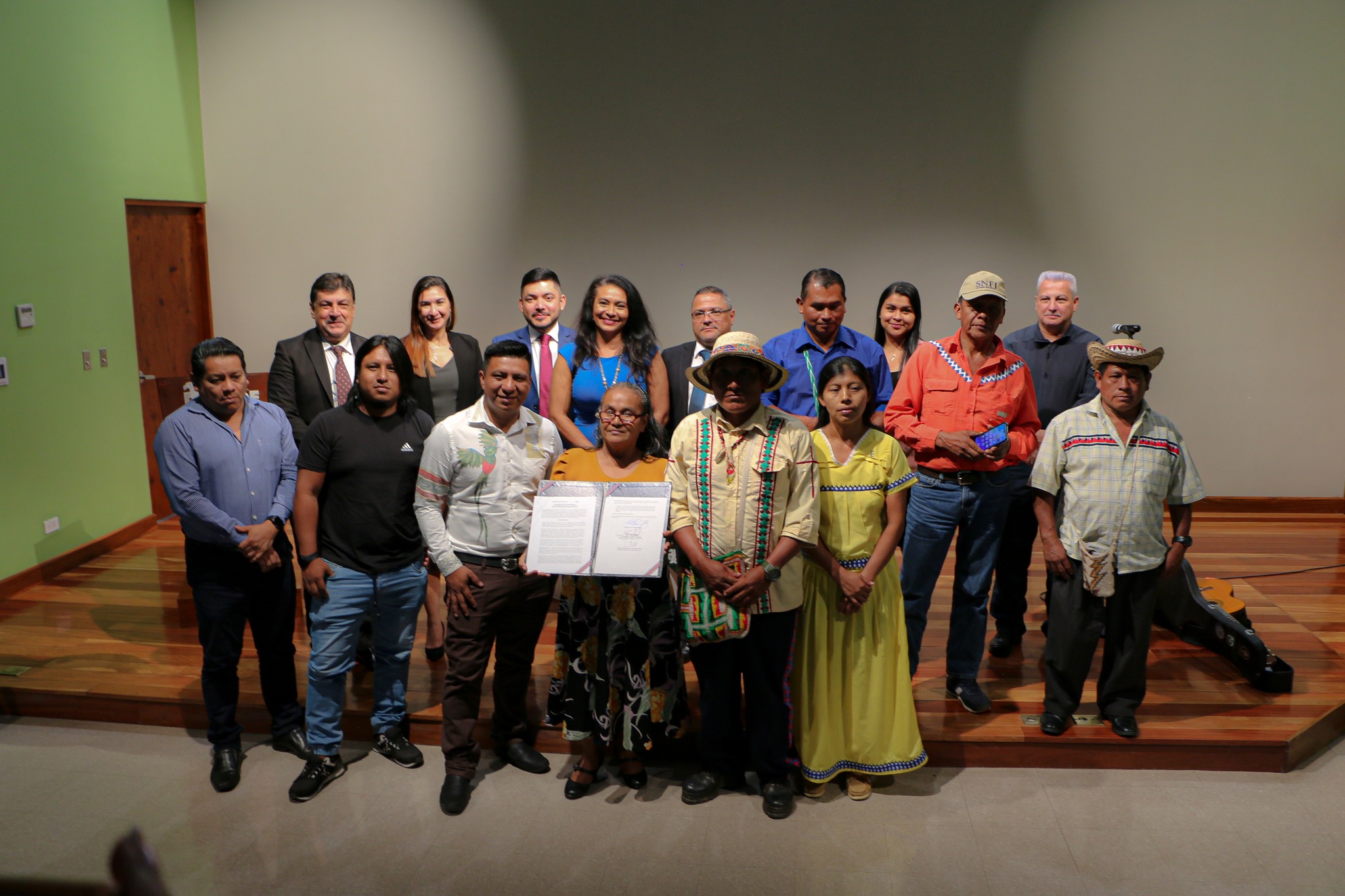 El acto se llevó a cabo en el Museo del Jade y de la Cultura Precolombina y contó con la participación del viceministro de Paz, Sergio Sevilla Pérez; el viceministro de Planificación Institucional y Coordinación Regional del Ministerio de Educación Pública, Leonardo Sánchez Hernández; la presidenta de la Junta Directiva de la Comisión Nacional de Asuntos Indígenas, Rubilia Stuart Leiva; el profesor y compositor musical Cabécar, Carlos Hidalgo Morales e invitados especiales representantes de pueblos indígenas.