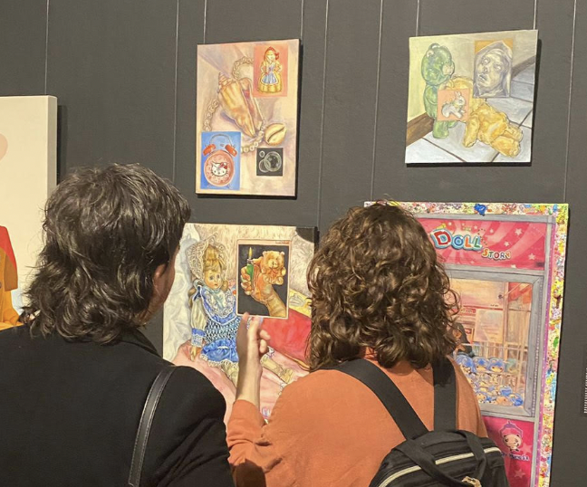 A su vez, Sofía presentó cuatro pinturas de óleo y un óleo intervenido con collage, con el tema de La autopercepción del ciberespacio.