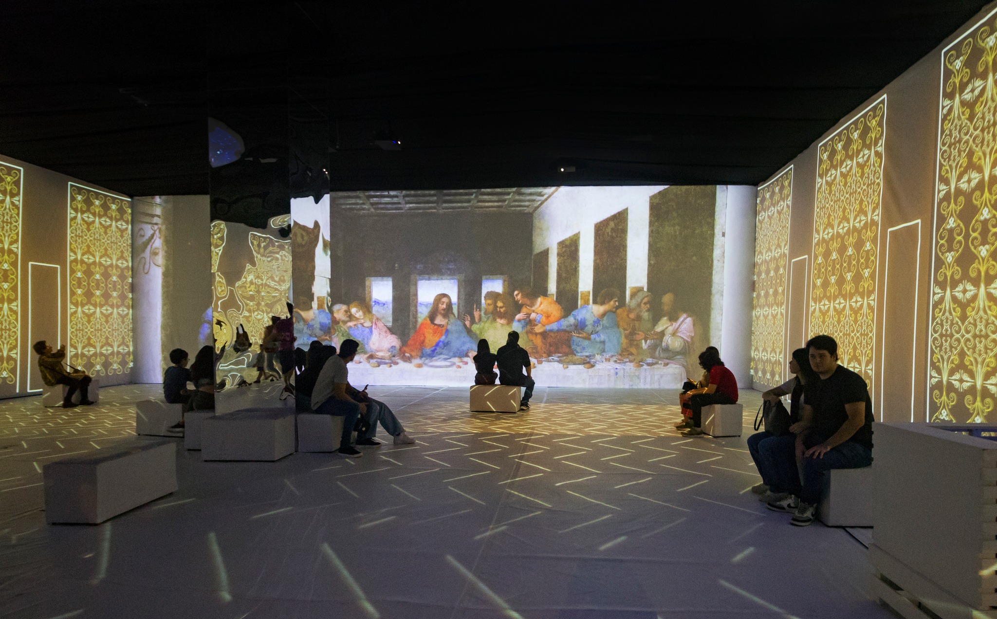 Igualmente, el espacio posee la sala inmersiva 360° que cuenta con un sistema de multi proyección sincronizada. El recorrido cuenta además con una sala de inventos y un armado 3D de la pintura “La Última Cena”.