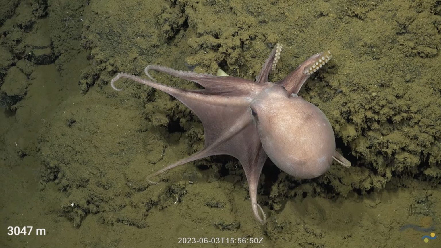 Crías de pulpo registradas durante una inmersión del ROV SuBastian. Cortesía: Schmidt Ocean Institute